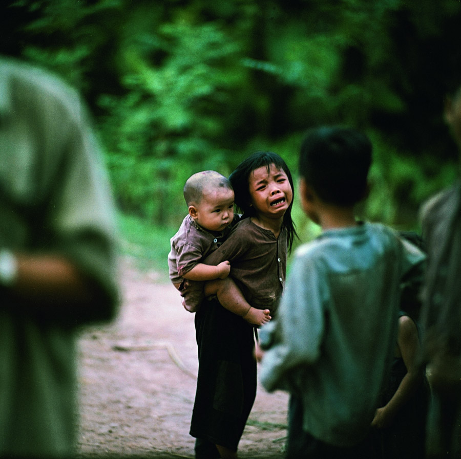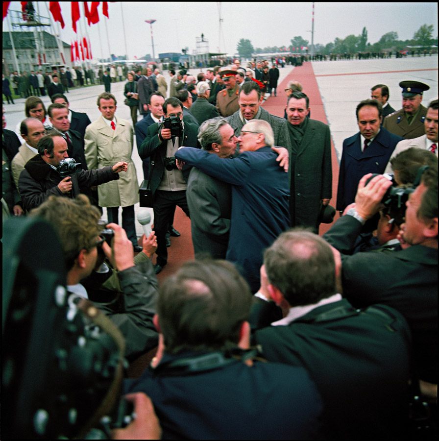 Am stärksten beeindruckt bin ich natürlich von seinen Gegensätzen, die er oft in einem einzigen Bild vereint. Das Liebespaar mit den umgeschnallten Gewehren zum Beispiel. Honecker und Breschnew, die beim sozialistischen Bruderkuss beobachtet werden. Oder der abgeschossene US-Bomberpilot, der von einer zierlichen Vietnamesin abgeführt wird.
