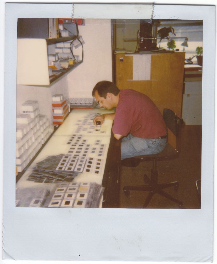 - Ein Blick auf alte Zeiten: Peter Bitzer über Dias auf dem Leuchttisch gebeugt. Foto: laif