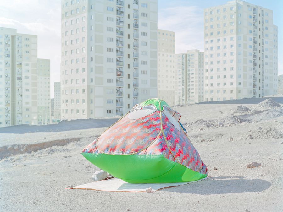 Hashem Shakeri ist einer der wichtigsten Nachwuchsfotografen des Iran – und sieht sich selbst lieber als experimentellen Künstler. Für seine Serie „An Elegy for the Death of Hamun“ über die Auswirkungen des Klimawandels und die damit verbundene anhaltende Dürre in seiner Heimat wurde er beim Unicef Photo of the Year Award ehrenvoll erwähnt und National Geographic veröffentlichte die Strecke. Darauf folgte die Arbeit „Cast out of Heaven“, die die unfertige und zugleich tote Landschaft aus Hochhäusern mitten in der Wüste am Rande von Teheran zeigt. Dort sind in den vergangenen Jahren Siedlungen für die Arbeiter der wachsenden und immer teurer werdenden Hauptstadt entstanden. Und die sind – wie so oft – an den Bedürfnissen der Menschen vorbei gebaut worden und dienen vor allem der Gewinnmaximierung der Investoren.