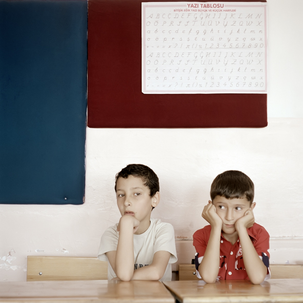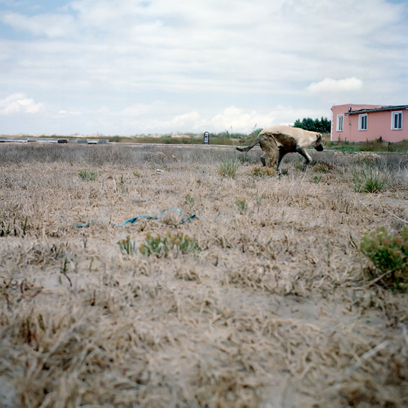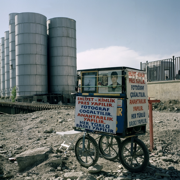 Ihr Dilpom ist aufgebaut als Reise vom Zentrum bis zur Peripherie – immerhin ist Ankara mit etwa 2500 Quadratkilometern fast dreimal so groß wie Berlin. Wie eine Fremde schlendert und fährt sie mit ihrer Mittelformatkamera durch die Stadt. Ihr dokumentarischer Stil wirkt für eine Fotografin mit Wurzeln in der Stadt zwar fast ernüchternd, spiegelt aber auch ein wenig ihre Ambivalenz und Distanziertheit wider. Auch der Titel ist ein Hinweis dafür – „Sifir Alti“ beudetet „Null Sechs“ und steht für das Autokennzeichen Ankaras. Dennoch ist ihr Blick alles andere als lieblos, höchstens geprägt von einer „stillen Melancholie“, wie sie es selbst nennt. Sie fotografiert kleine Kätzchen an den Mülltüten am Straßenrand, Busbahnhöfe und mobile Fotoboxen, modern gekleidete Jugendliche und gelangweilte Schulkinder, und ganz zum Schluss einen Kangal, den türkischsten aller Hunderassen. Aber er sieht nicht stolz und stark aus, eher aussätzig und trabt wie geprügelt durch die karge Landschaft und aus dem Bild.