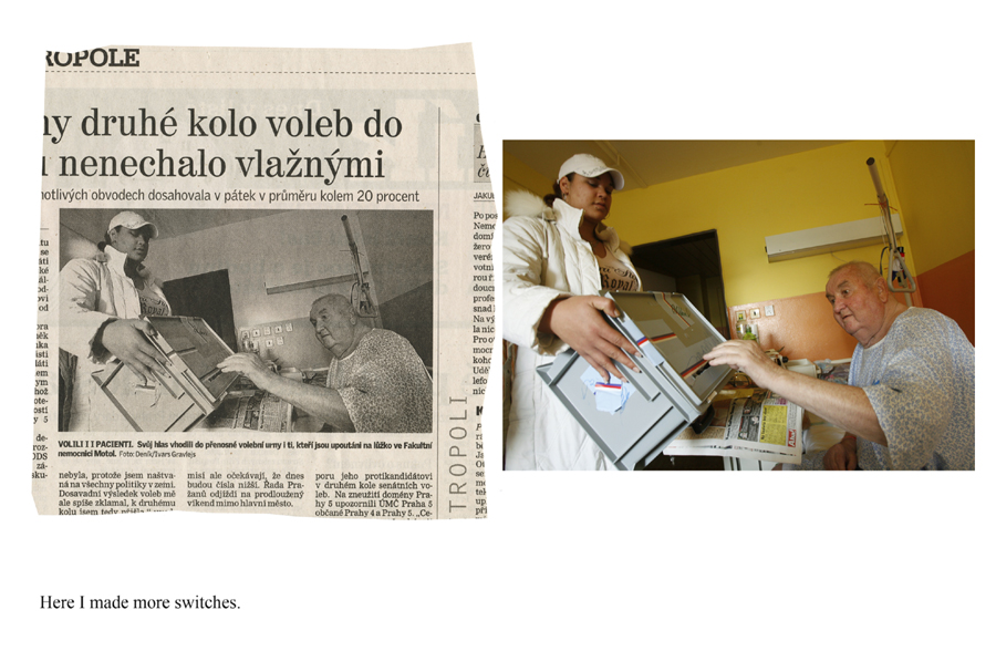 Gravljes will den Manipulationen der Medien eine weitere Manipulation hinzufügen – jedoch ohne, dass die Medien diese selbst erkennen, denn während seiner Zeit bei der „Deník“ wurde er nie erwischt. Im Gegenteil: Weil Gravljes irgendwann genau wusste, welche Bilder bevorzugt genommen werden, konnte er sie entsprechend aufmotzen – bei einem Konzertfoto stempelte er mehr bunte Kreise in den Hintergrund und – zack – landete es sogar auf der Titelseite. Und weil auf dem Foto von Sänger José Carreras eine unschöne Hand ins Bild ragt, ließ Gravljes diese verschwinden – und mit ihr auch einen Finger Carreras. Offensichtlich bemerkten weder die Redaktion noch Leser diesen Fehler.