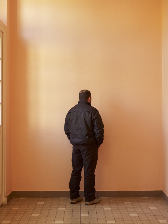 Peter Gransers neues Buch ist von der Stiftung Buchkunst zu einem der „fünf schönsten deutschen Bücher 2014“ gewählt worden. Aus gutem Grund: Die zurückhaltende Gestaltung erinnert an einen reizarmen Raum im Therapiebereich und genau darum geht es auch: „J´ai perdu ma tête“, also „Ich habe den Verstand verloren“, zeigt Aufnahmen aus einer Psychiatrie: Wir sehen Detailaufnahmen wie die Delle in der Wand über einem Stuhl, einen kleinen Plastikbecher für Medikamente, Kritzeleien, Kreuze und Kreise auf einem gefliesten Fußboden, als hätte jemand Tic Tac Toe ohne jegliche Begrenzung gespielt. Granser zeigt uns zudem einige Patientenporträts und Aufnahmen von Tonfiguren, die die Patienten in der Kunsttherapie angefertigt haben. Schnell stelle ich mir die Frage, ob man als Verrückter eingeliefert wird oder erst dort verrückt wird.