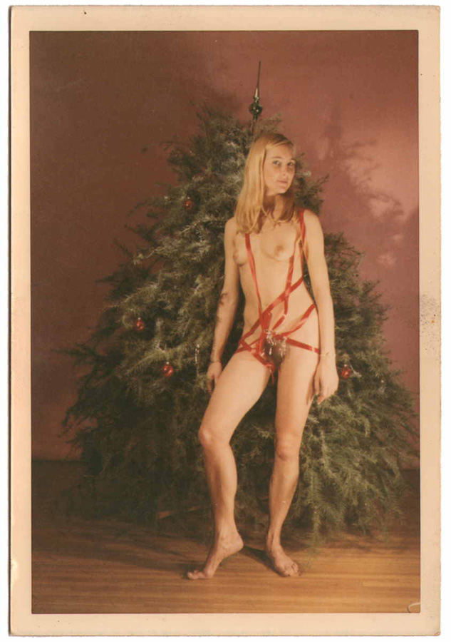 Das Bild stammt aus einer ganzen Reihe sehr ähnlicher Aufnahmen, die noch bis zum 13. Februar in der Ausstellung „Sitting“ in der Galerie Susanne Zander zu sehen ist. Wie der Name verrät, sehen wir dabei größtenteils nackte Frauen, die auf irgendetwas sitzen: Mal sind es Nahrungsmittel wie eben Brot, ein Kürbis oder eine Wassermelone, oder es sind Einrichtungsgegenstände wie ein Kissen, eine Stuhllehne oder ein Nachttopf. Aber es gibt auch Fotos von liegenden oder stehenden Frauen, z.B. vor einem (erbärmlich geschmückten) Weihnachtsbaum.