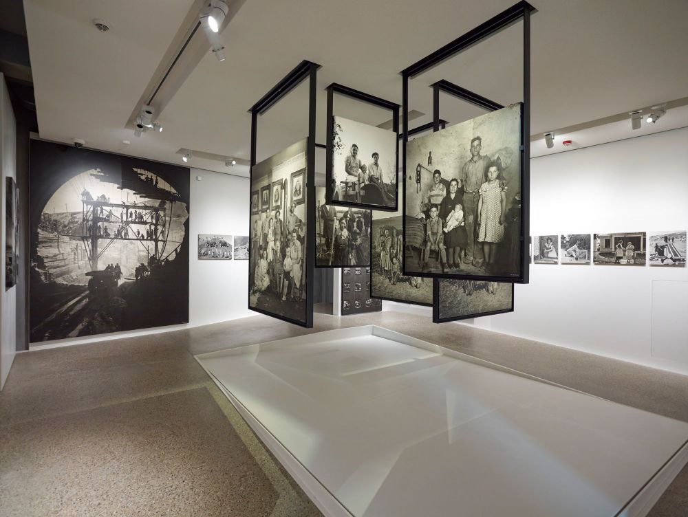 - Die Installation mit Familienfotos aus der ganzen Welt ist zentraler Bestandteil der Ausstellung.